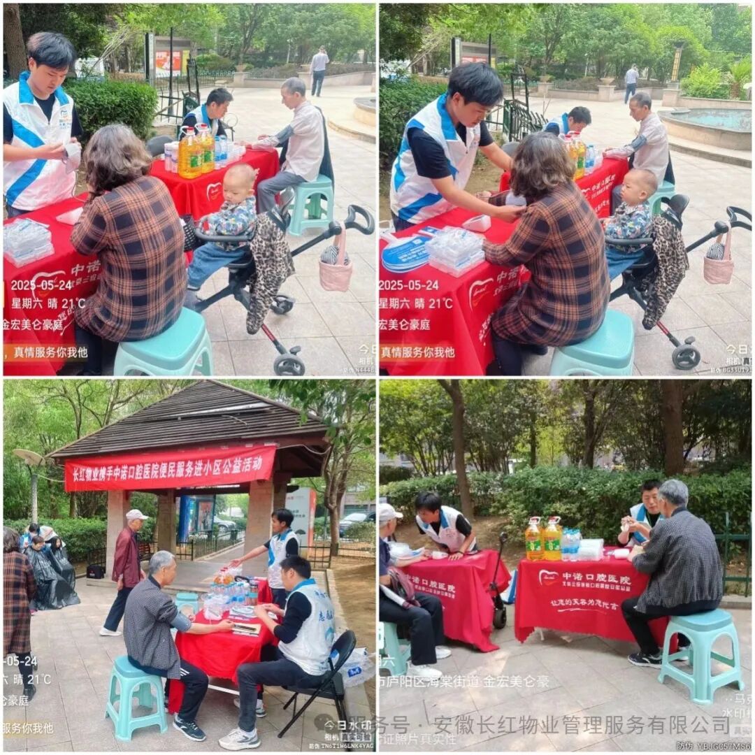 为深化小区服务,提升居民生活品质,安徽长红物业金宏美仑豪庭物业服务中心携手专业的中诺口腔医院,为业主们带来了贴心的口腔筛查服务和便民理发服务,让业主们在家门口就享受到了实实在在的便利,收获了满满的幸福感。