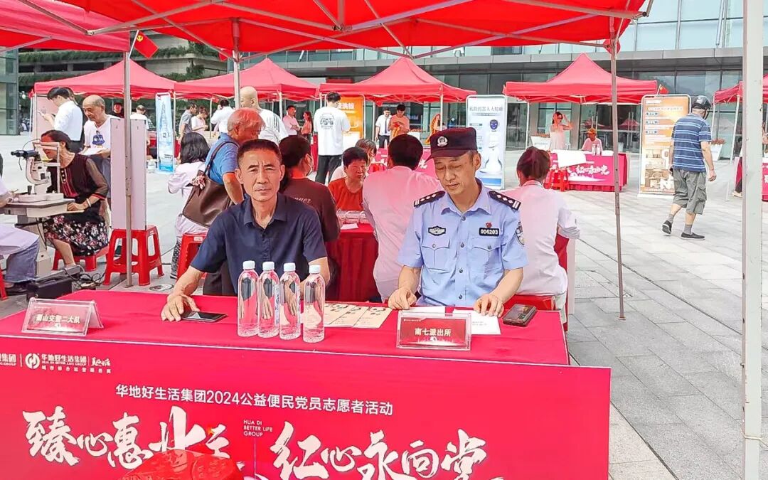 为强化党建工作,稳固“党建引领 规范运营”的"红色物业"品牌形象,增强楼宇活力与提升业主满意度,2024年7月1日,由华地好生活集团党支部主办、中共合肥市蜀山区南七街道洪岗社区委员会及华地商业公司共同协办的“【臻心惠业主 红心永向党】华地好生活集团公益便民党员志愿者活动”于华地金融中心广场隆重举办。当日清晨八点半,华地金融中心广场在雨后的清新中显得尤为瞩目,鲜亮的红色帐篷和飘扬的党旗构成了一道亮丽的风景线。二十余家商户及政府相关单位积极参与,通过丰富多样的志愿服务项目,共同搭建起一个公益与公众互动的平台,致力于提供贴心的生活服务。