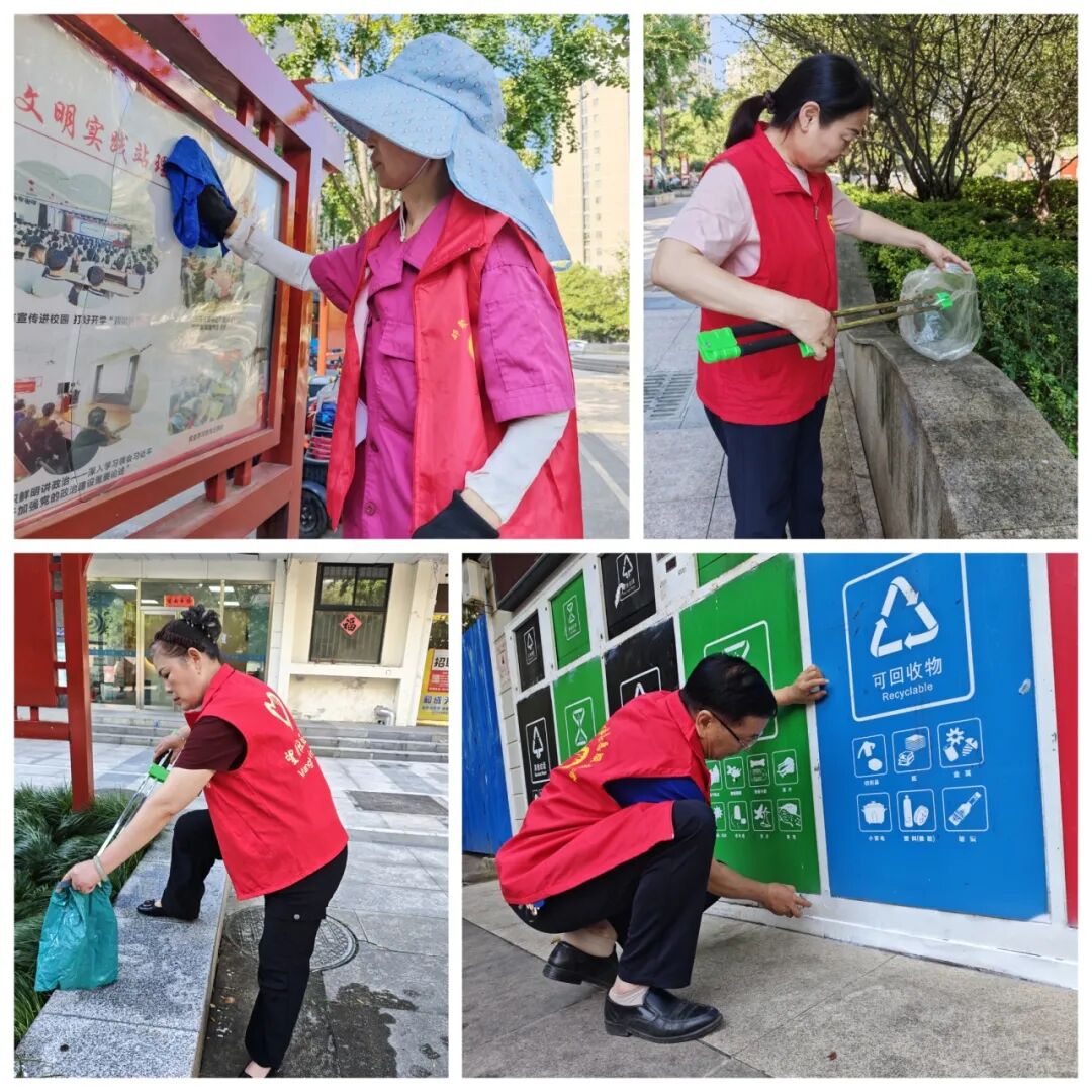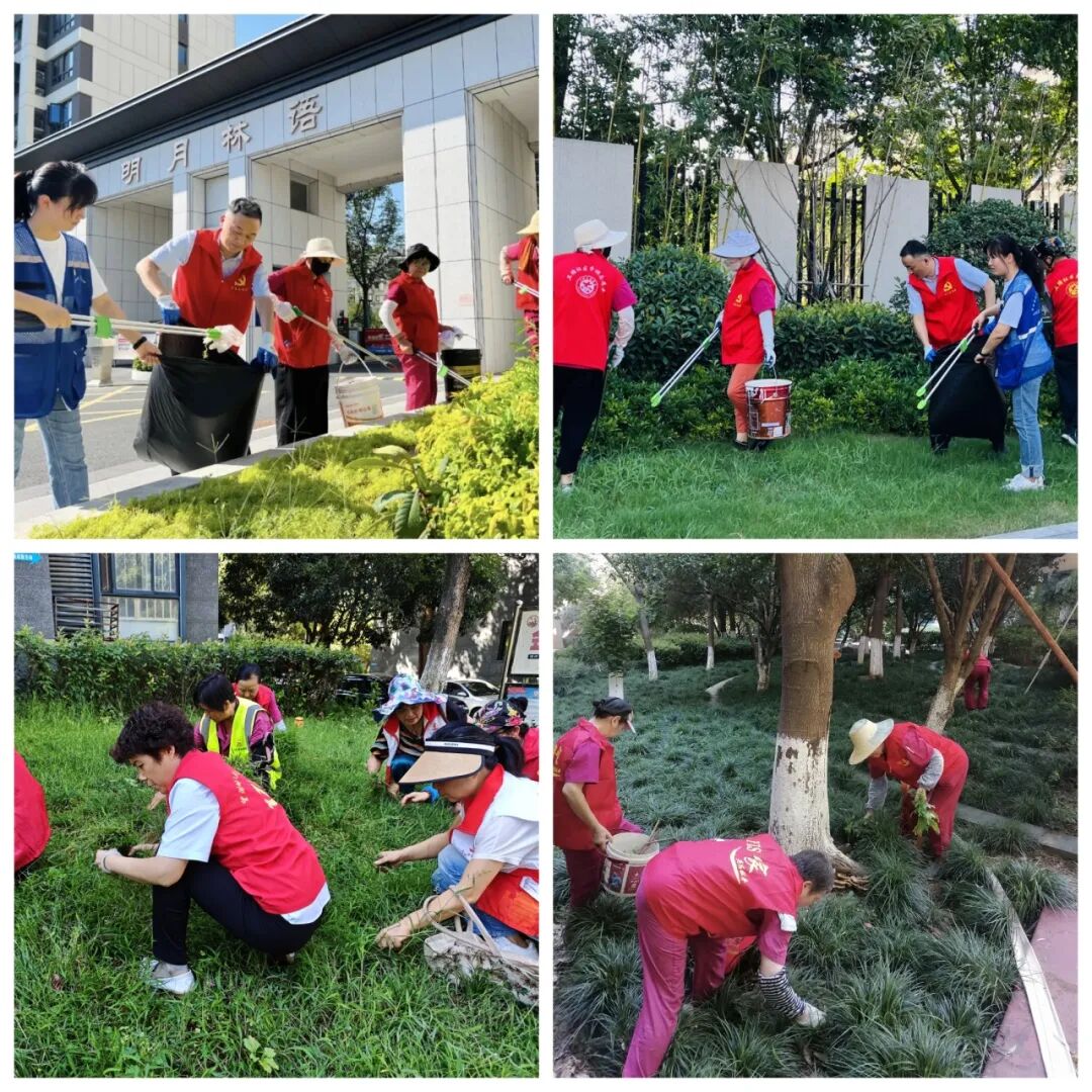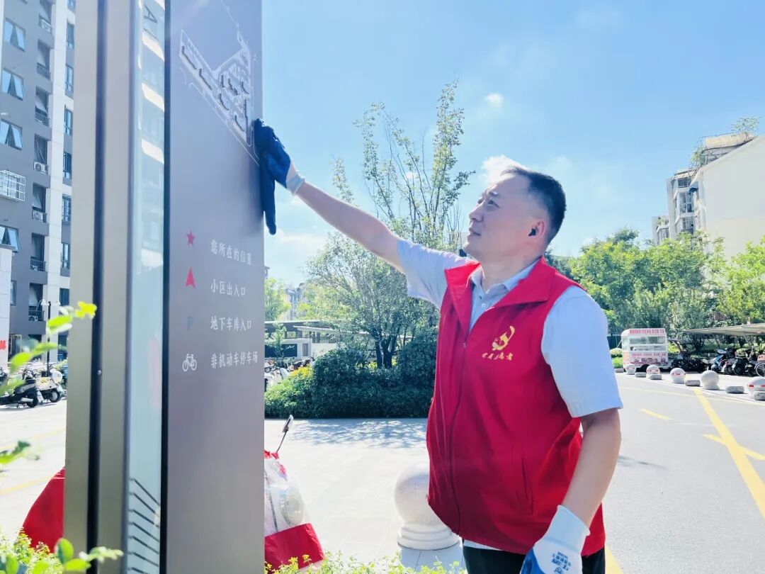 物业工作人员和志愿者们分工协作,清理枯枝落叶、捡拾隐藏垃圾、移除杂草,对小区的公共设施进行细致擦拭,确保健身器材、公示牌等设施恢复洁净外观。