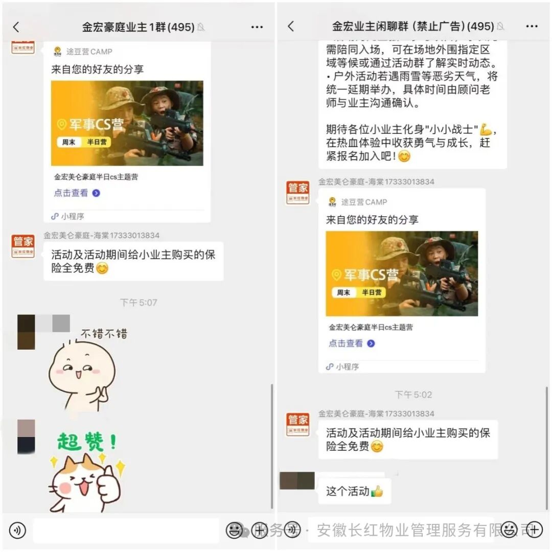 从活动策划、场地布置,到教官邀请、安全保障,每一个细节都反复打磨:提前排查场地安全隐患,为小朋友们准备防护装备,全程有工作人员贴心守护…… 用实际行动圆了孩子们的 “军人梦”,也让业主感受到了 “家” 的温度。