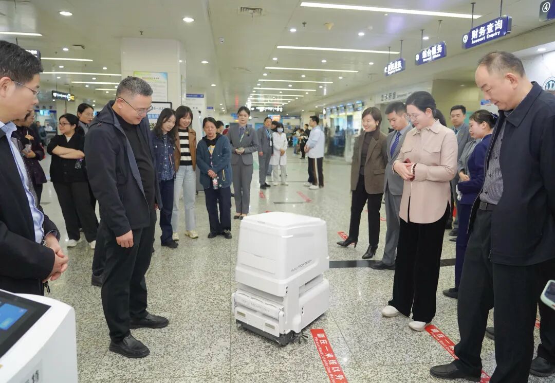 随后,调研组前往公司驻安徽医科大学第一附属医院项目部,实地察看了一站式服务中心和智能机器人在药物配送、环境清洁、设备管控等医院后勤服务场景的落地应用。美而特以数字化手段重构后勤服务全流程、全面提升医院后勤管理效能的做法和创新力,让不少代表感到“震撼”和“出乎意料”。