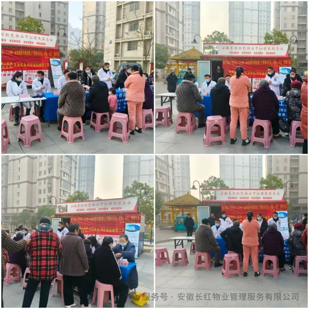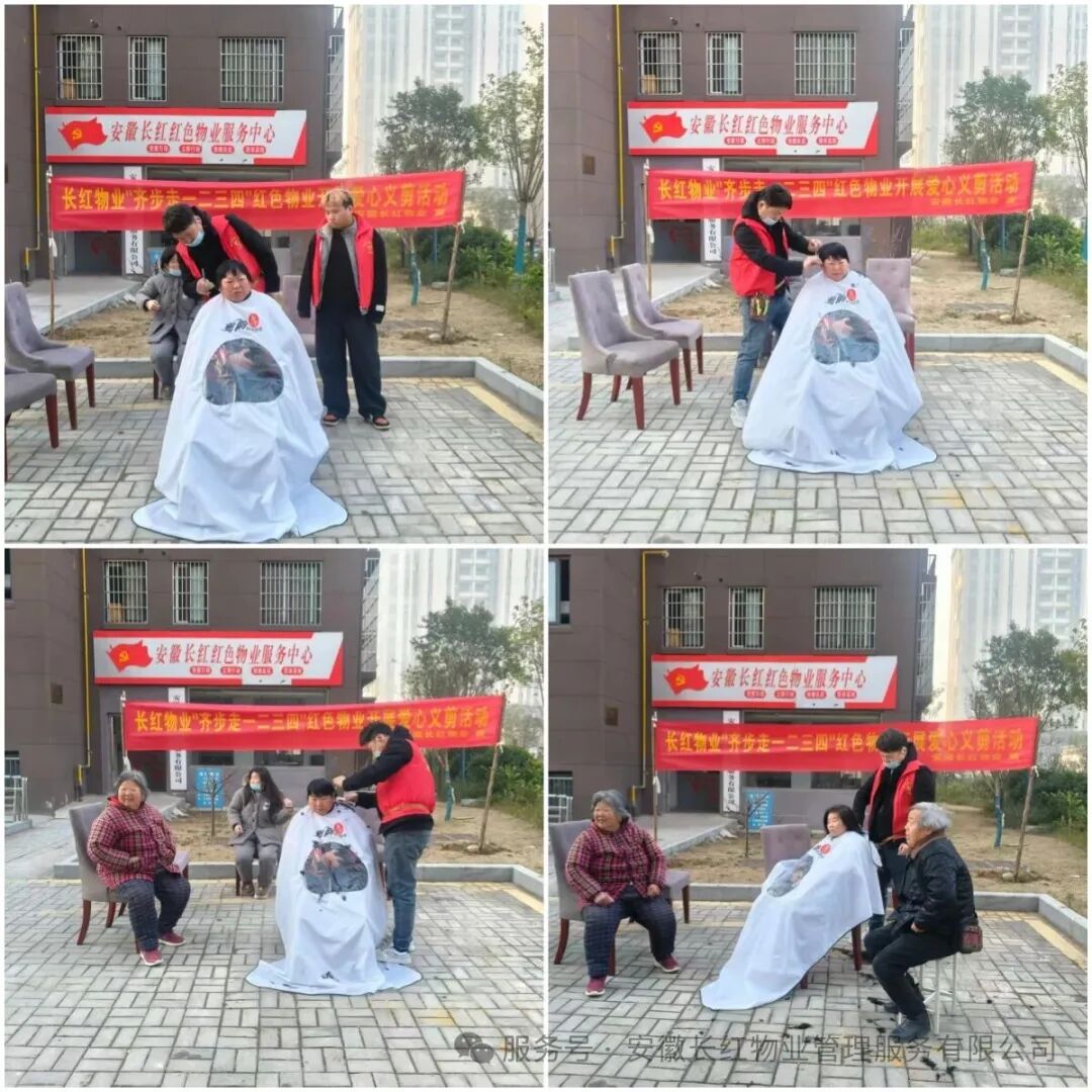 长红物业始终坚持以业主需求为导向,安徽长红红色物业中心便民服务站已常态化开展“长红物业齐步走一二三四”系列主题活动,涵盖“义诊、义剪、视力检查、免费上门维修”等多元服务,真正将“红色细胞”注入社区肌理,让“红色阵地”成为居民信赖的“幸福港湾”。