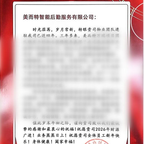 某学校:在过去的一年里,无论是校园环境卫生的维护、设施设备的维修保养,还是各类活动的后勤支持,贵公司团队都展现出了勤勉负责的工作态度和卓越的服务能力。