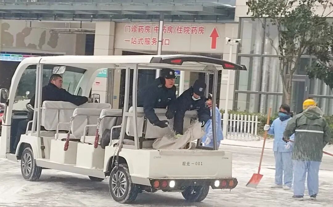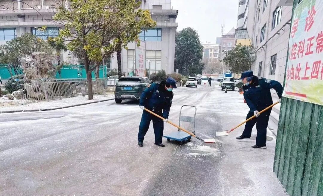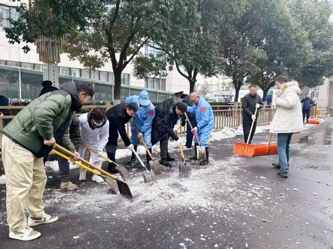 20日凌晨,雪花如期而至。依据市安全生产(防灾减灾救灾)委员会办公室“边下边清、雪停路净”的倡议精神,团队全员早早到岗,大家纷纷拿起铲子、扫把,变身应急除雪队,率先完成院区主干道积雪清理,保洁、保安、机电、导医导诊、绿化、管理人员等,不分岗位、全员集结,在漫天飞雪中并肩作战。