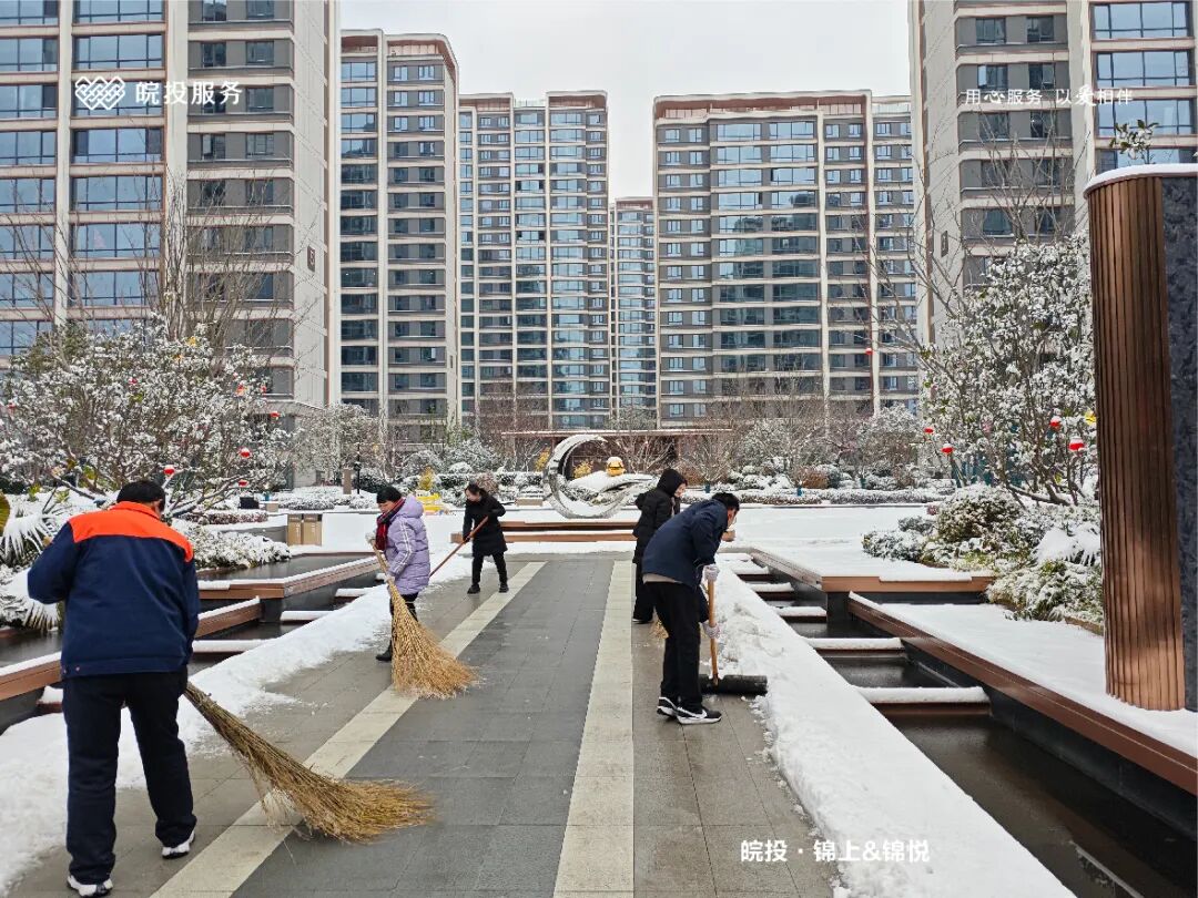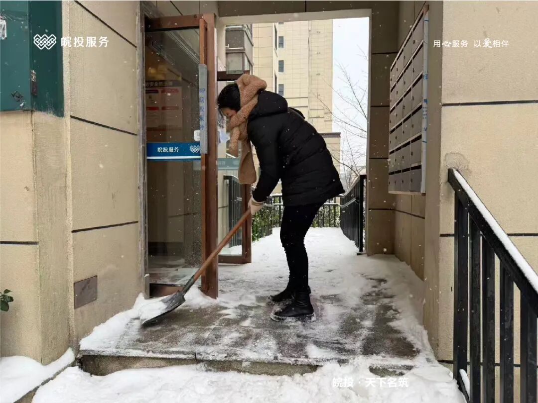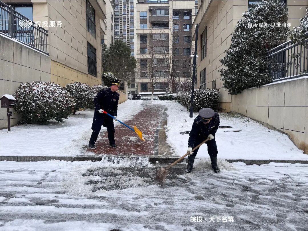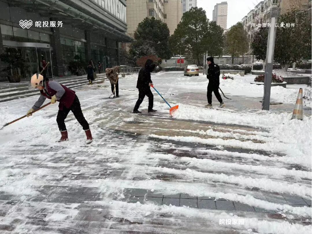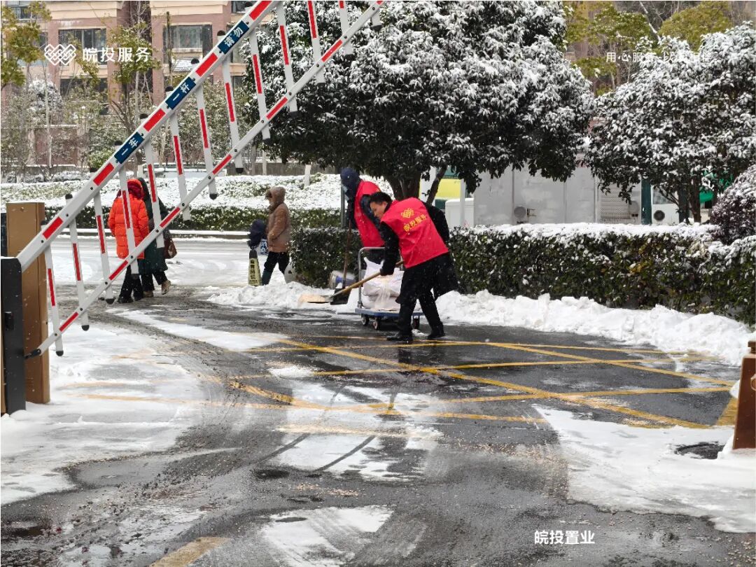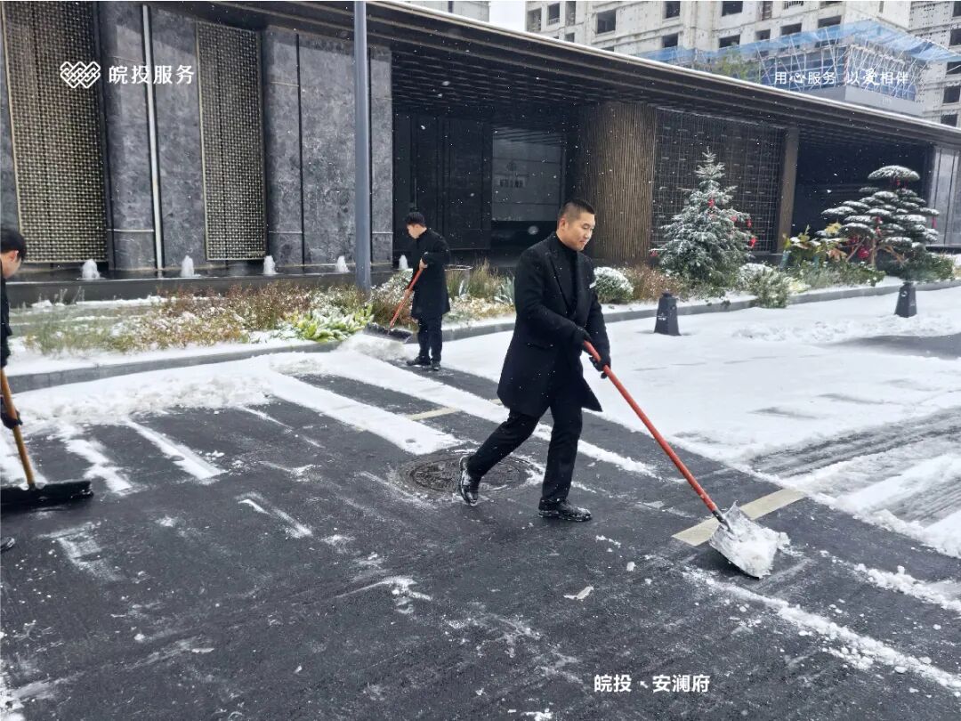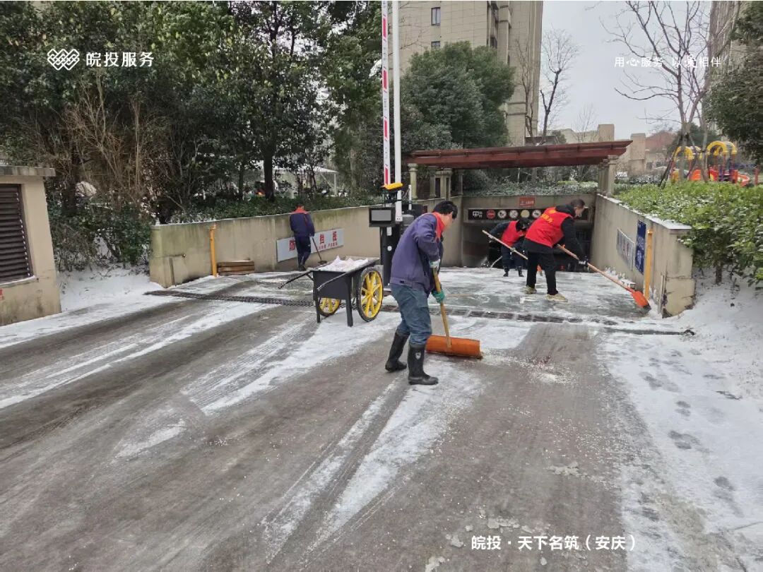皖投服务各服务中心以雪为令、闻雪而动,第一时间启动冬季除雪应急预案。全员明确分工、划片包干,铁锹、扫帚、融雪剂等物资精准配送到各点位。一场与风雪竞速的破冰除雪攻坚战全面打响,以责任担当筑牢业主冬日出行的安全防线。
