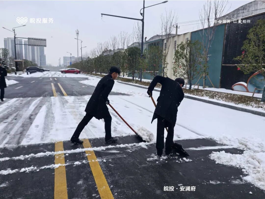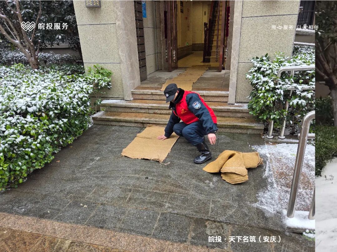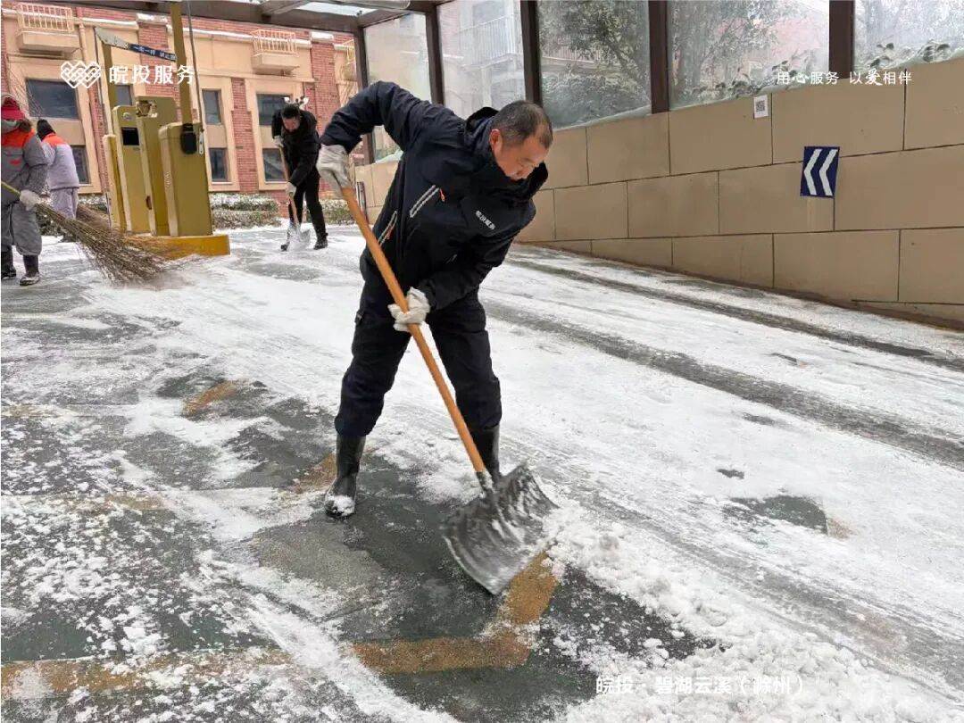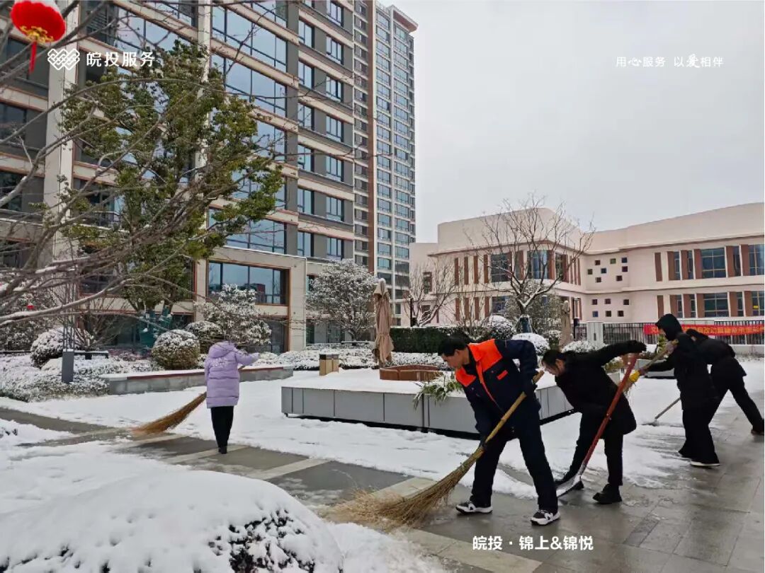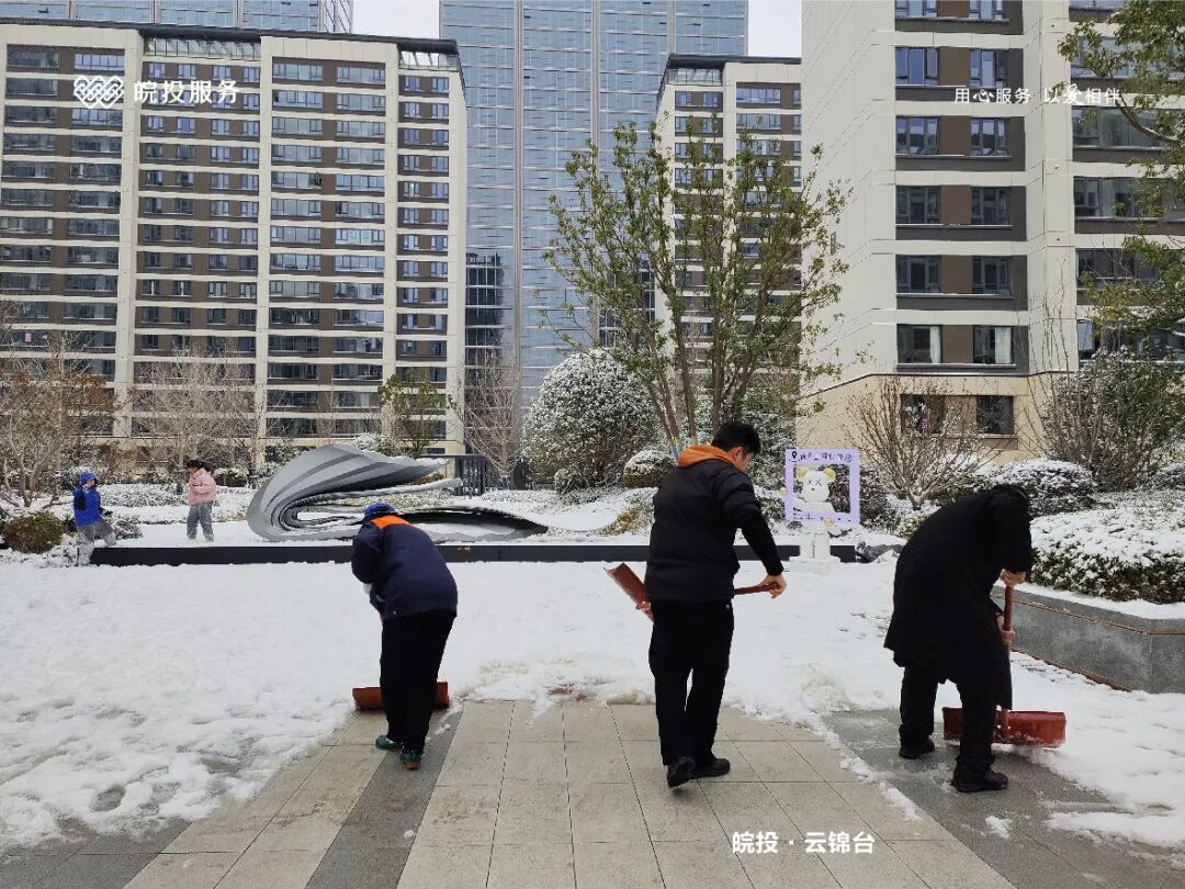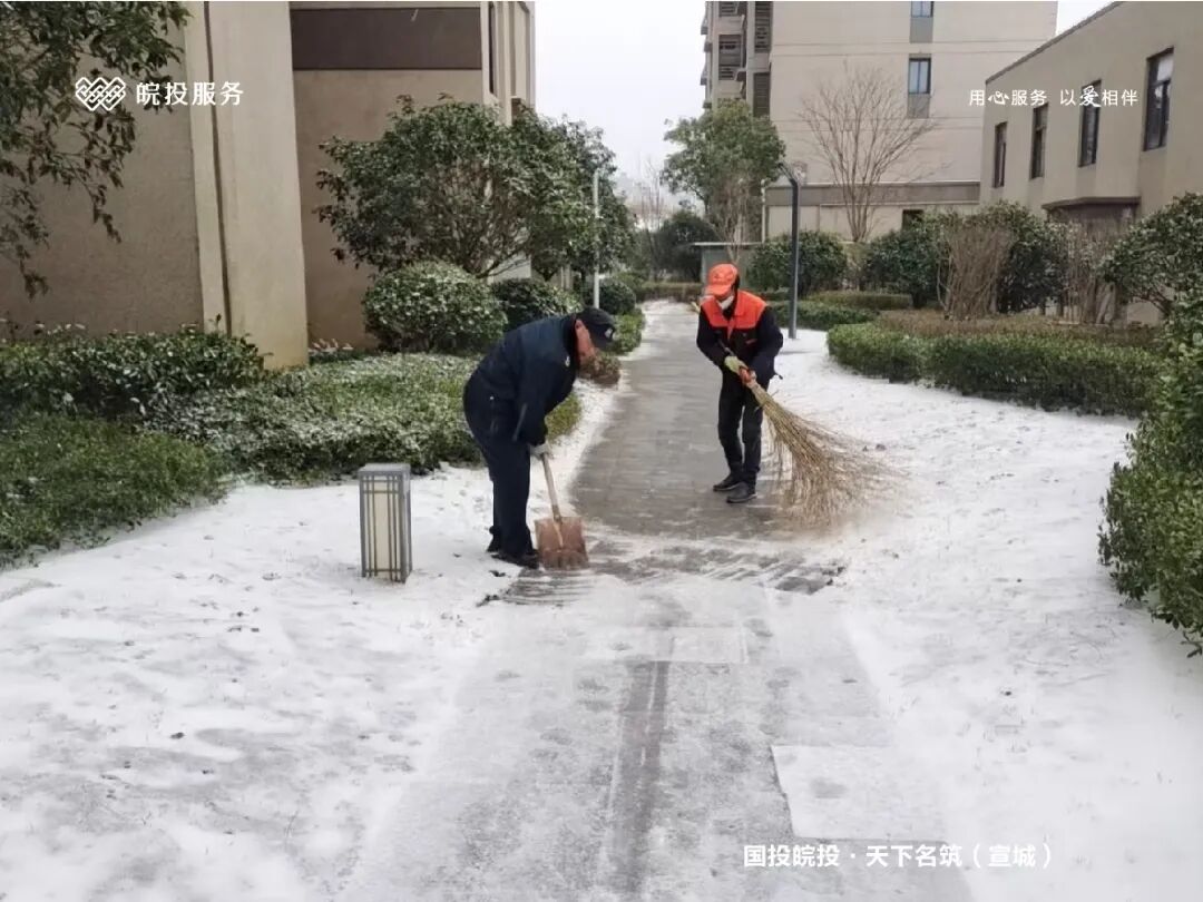 皖投服务各服务中心以雪为令、闻雪而动,第一时间启动冬季除雪应急预案。全员明确分工、划片包干,铁锹、扫帚、融雪剂等物资精准配送到各点位。一场与风雪竞速的破冰除雪攻坚战全面打响,以责任担当筑牢业主冬日出行的安全防线。