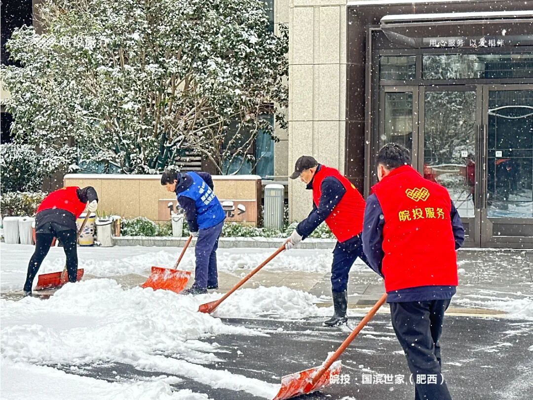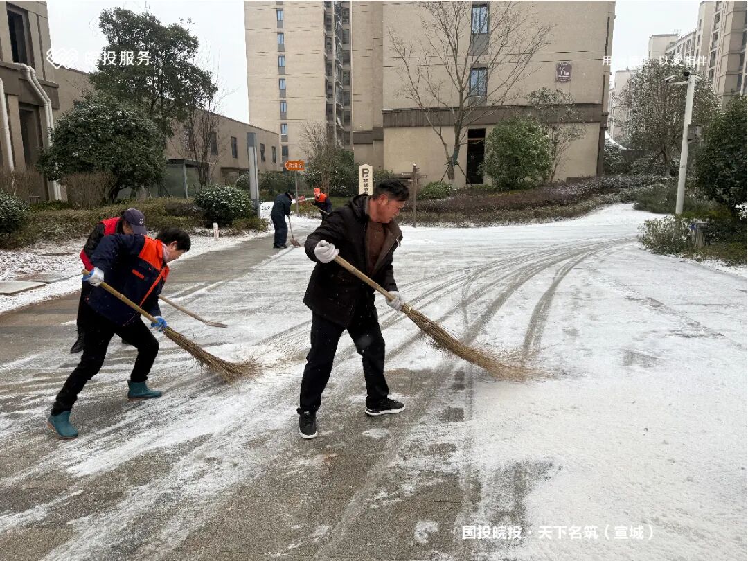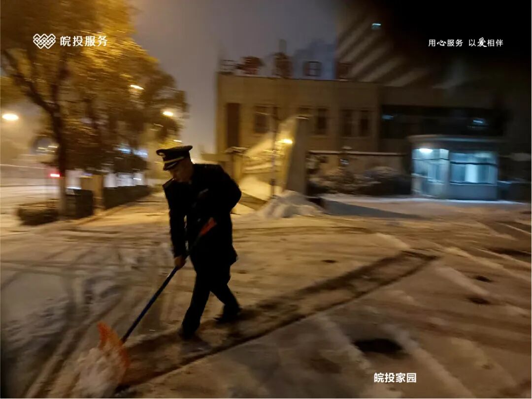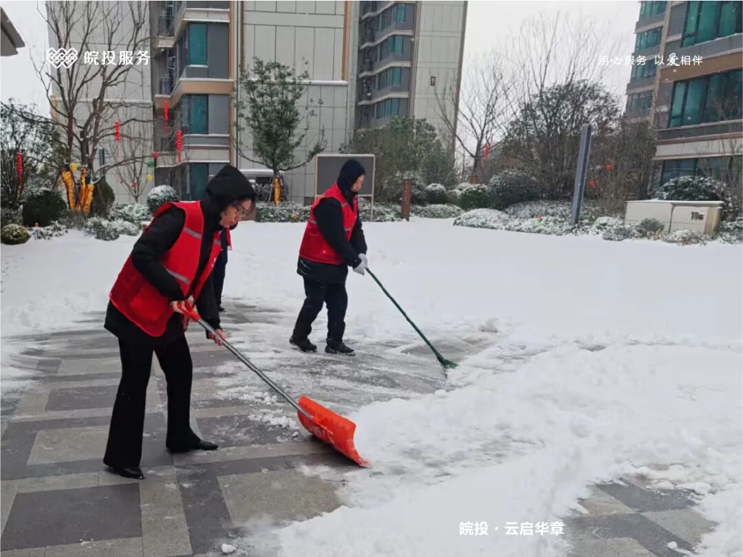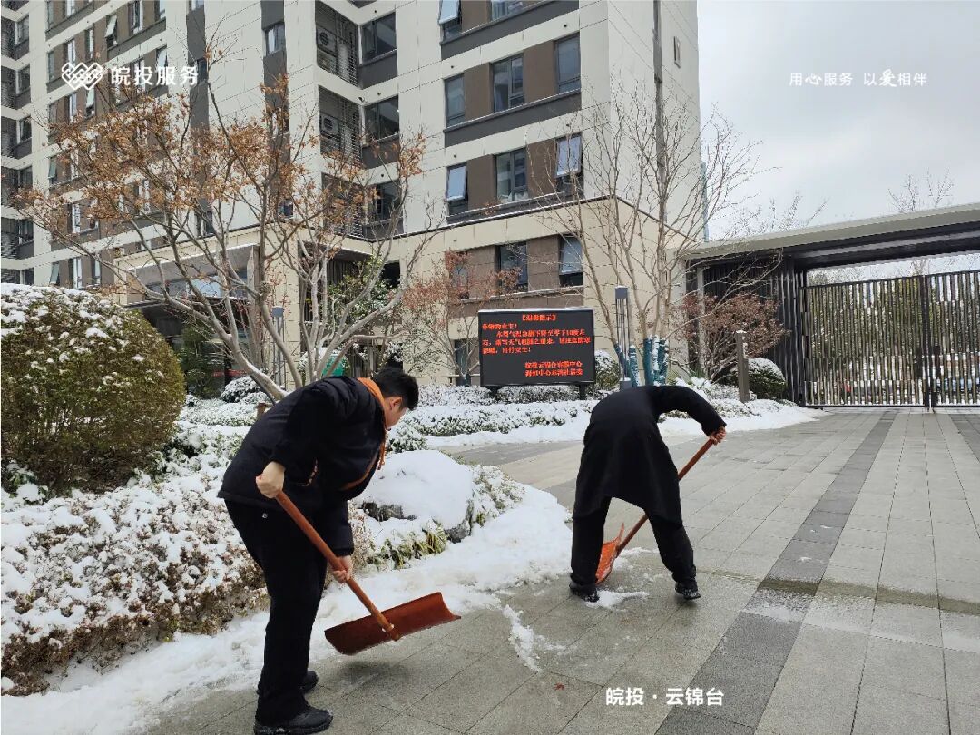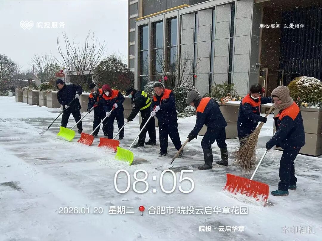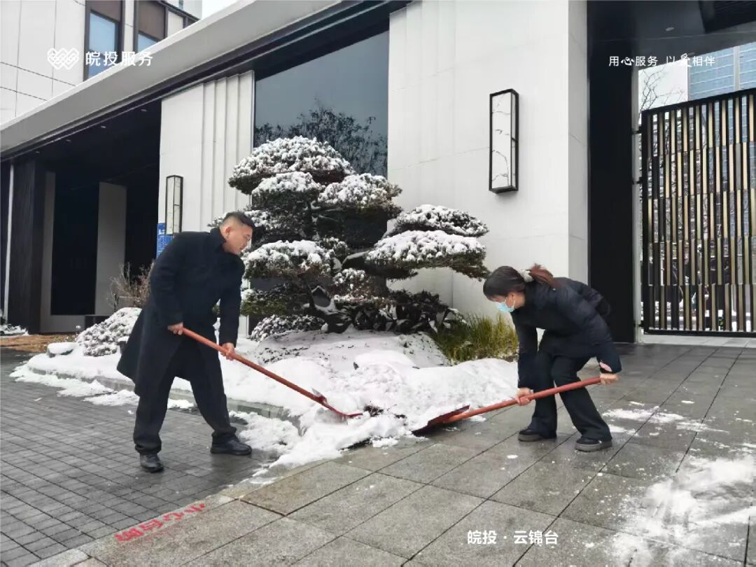 皖投服务各服务中心以雪为令、闻雪而动,第一时间启动冬季除雪应急预案。全员明确分工、划片包干,铁锹、扫帚、融雪剂等物资精准配送到各点位。一场与风雪竞速的破冰除雪攻坚战全面打响,以责任担当筑牢业主冬日出行的安全防线。