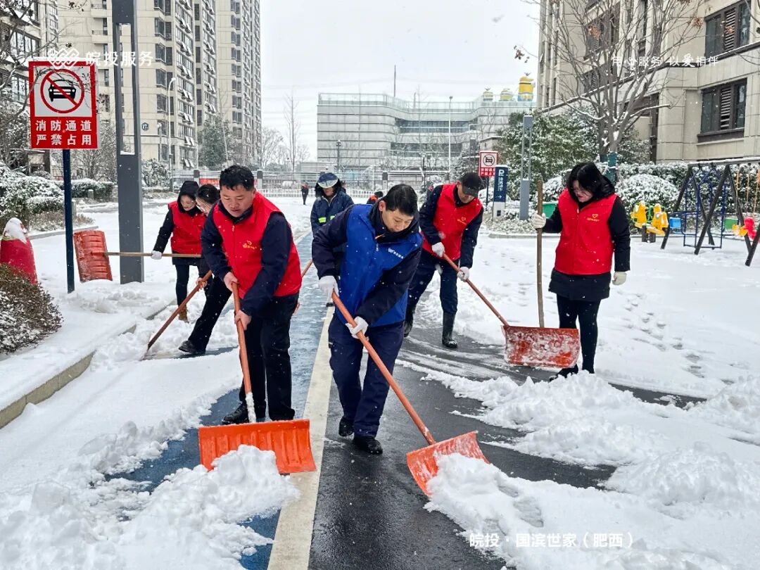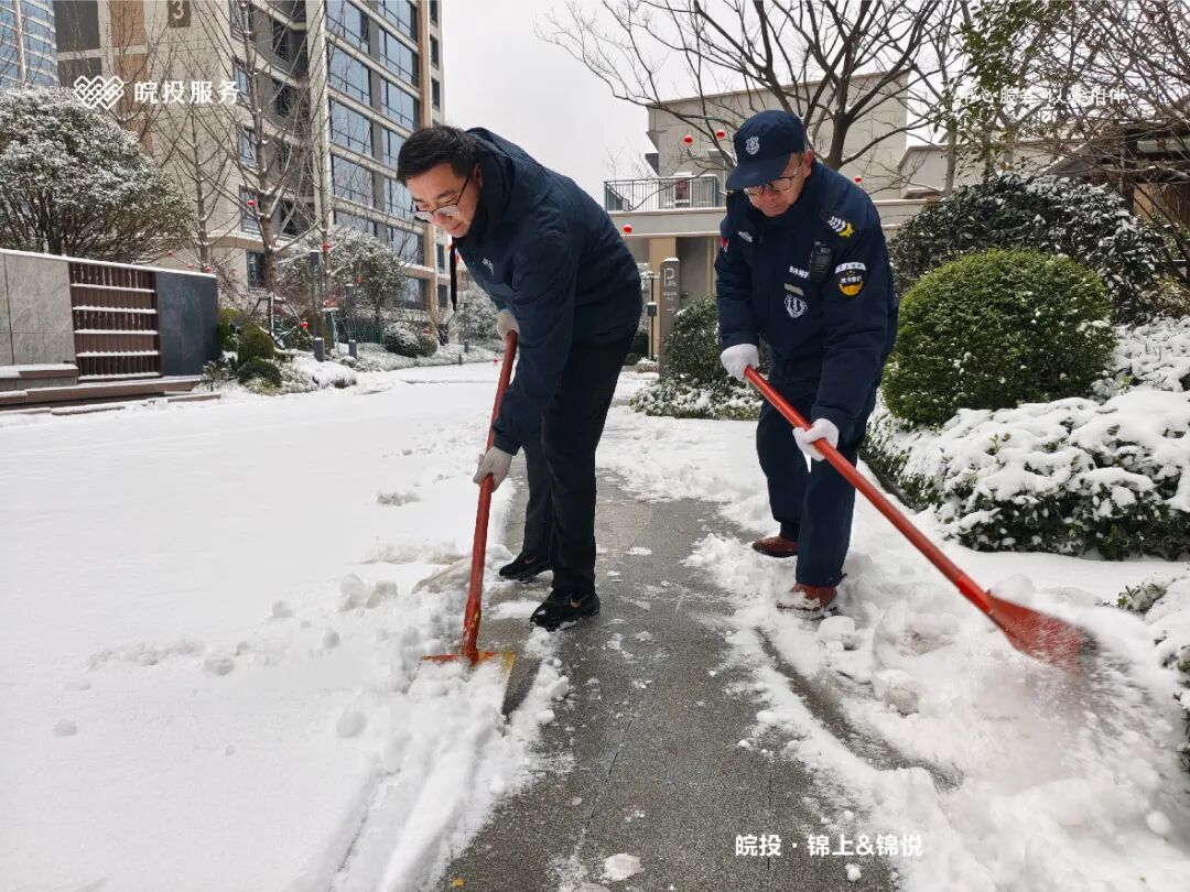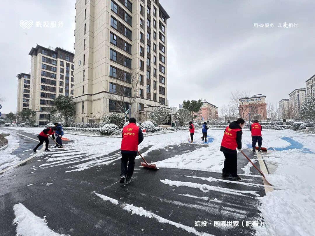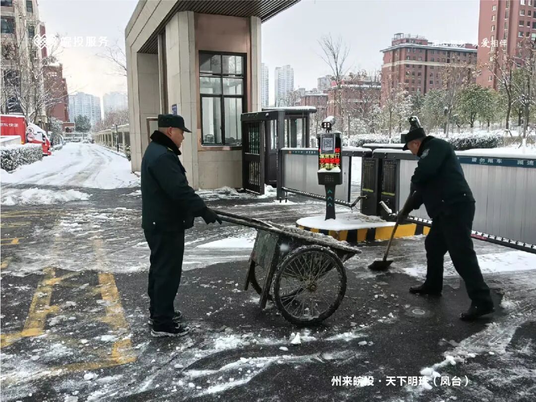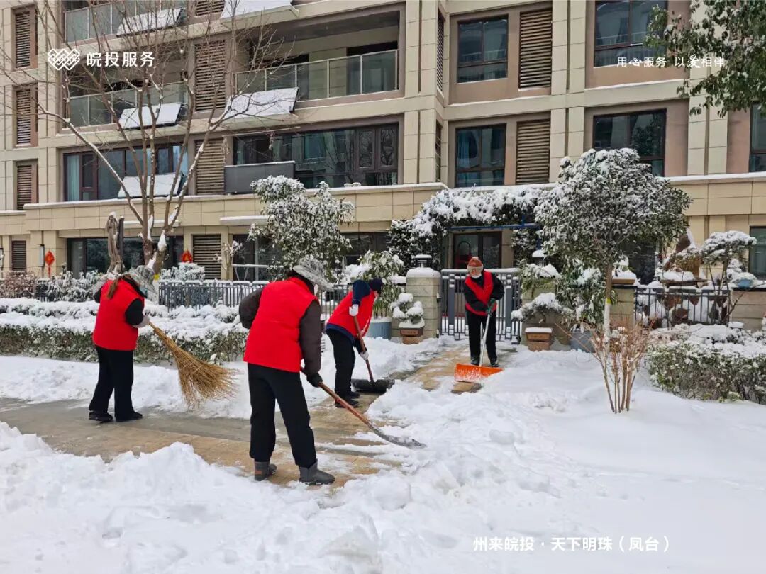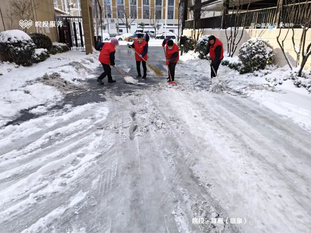 皖投服务各服务中心以雪为令、闻雪而动,第一时间启动冬季除雪应急预案。全员明确分工、划片包干,铁锹、扫帚、融雪剂等物资精准配送到各点位。一场与风雪竞速的破冰除雪攻坚战全面打响,以责任担当筑牢业主冬日出行的安全防线。