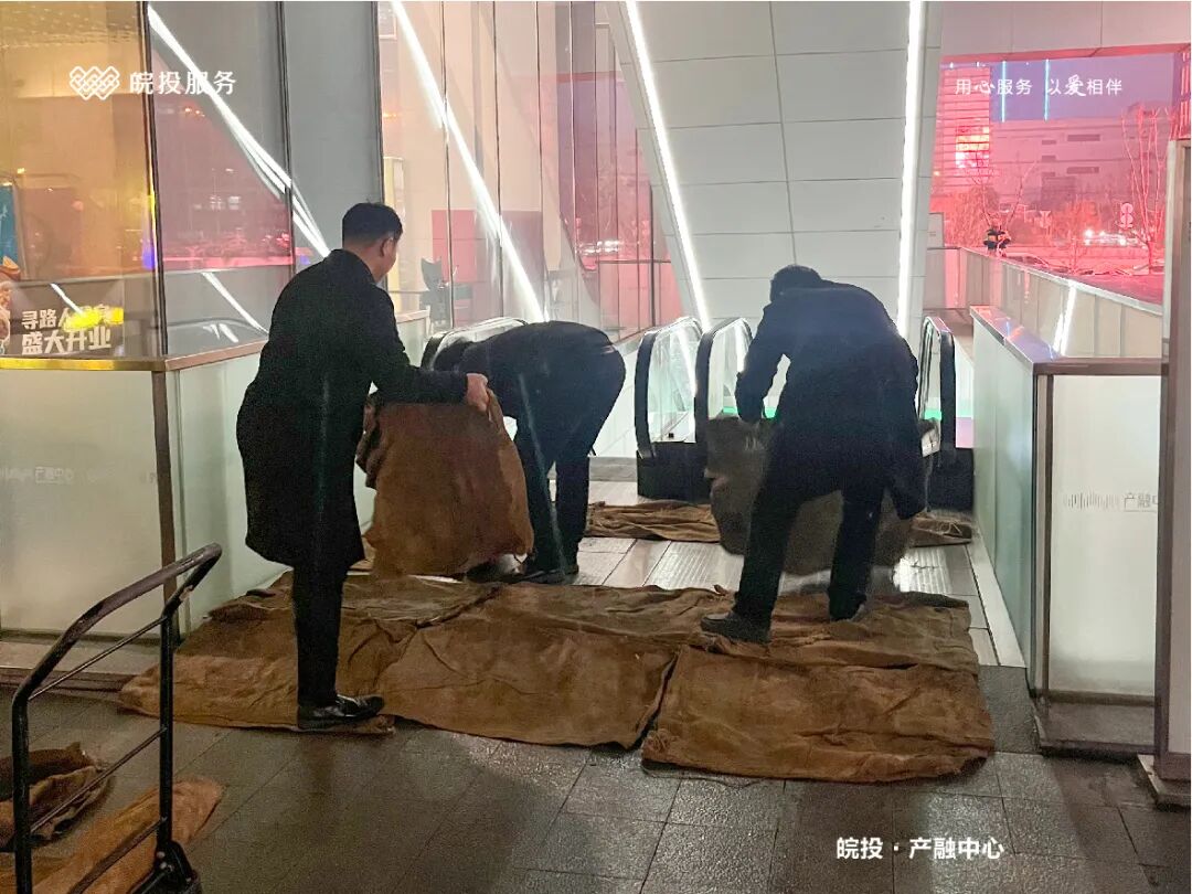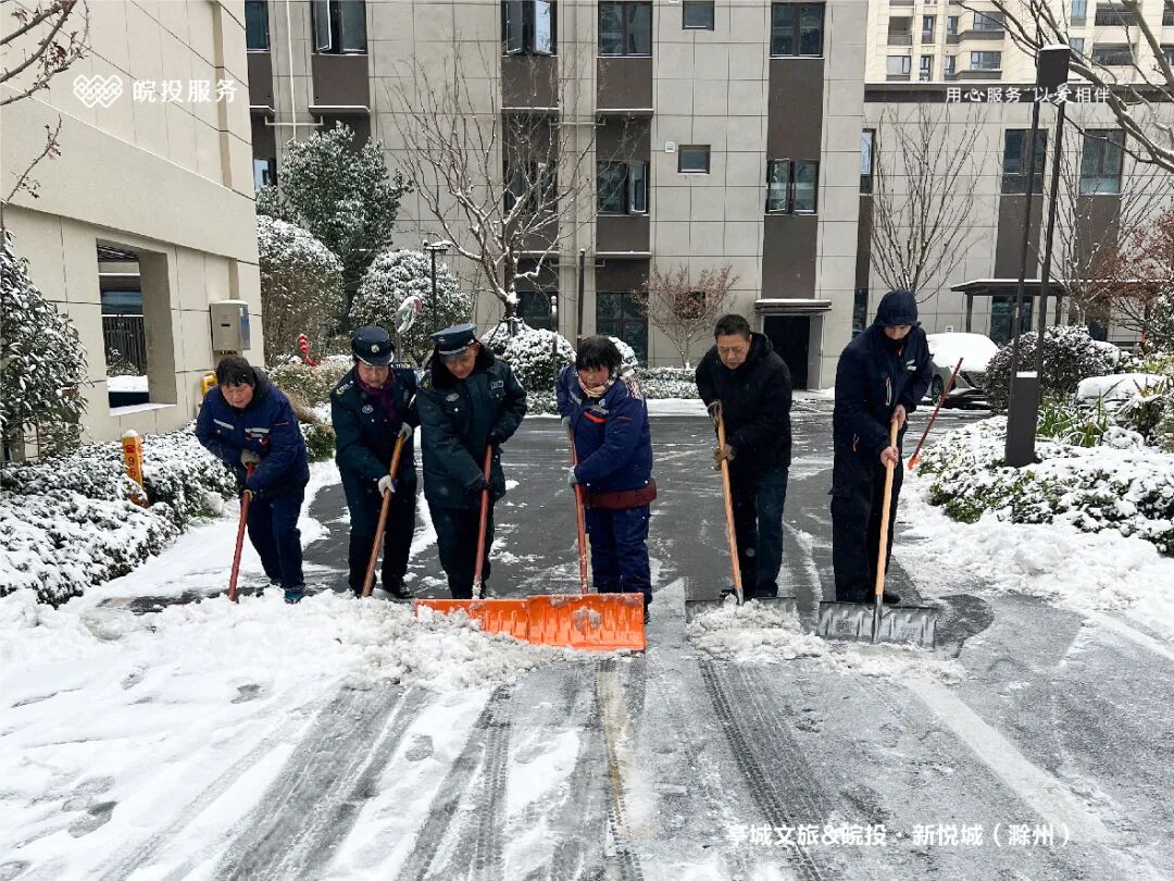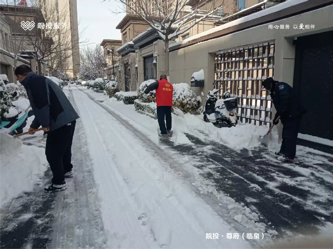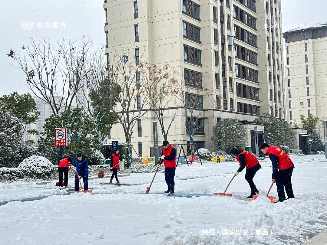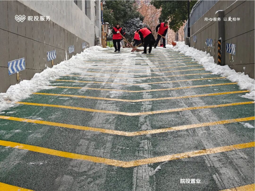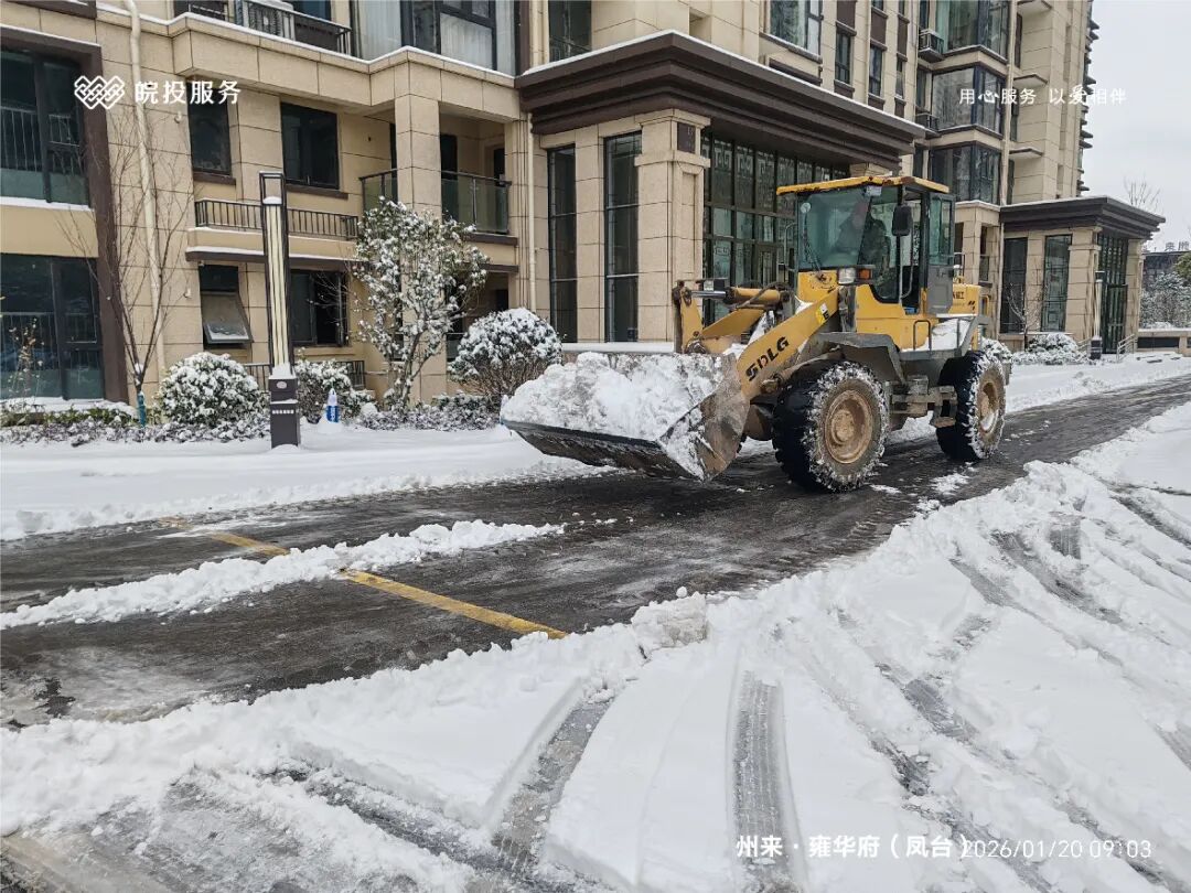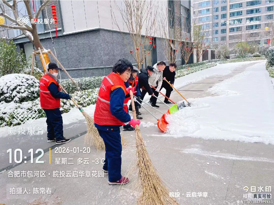 皖投服务各服务中心以雪为令、闻雪而动,第一时间启动冬季除雪应急预案。全员明确分工、划片包干,铁锹、扫帚、融雪剂等物资精准配送到各点位。一场与风雪竞速的破冰除雪攻坚战全面打响,以责任担当筑牢业主冬日出行的安全防线。