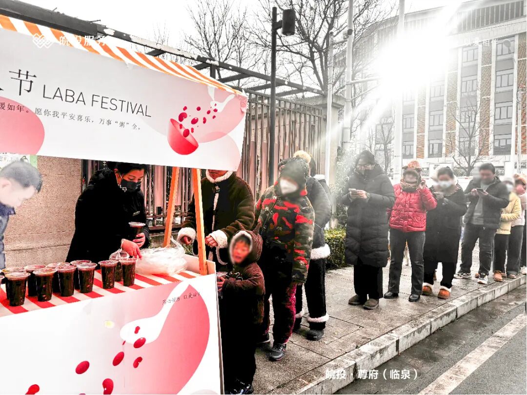 工作人员早早备好了熬煮得软糯香甜的腊八粥,热气腾腾的粥香弥漫在冬日的晨光里,暖意也随之一路蔓延。