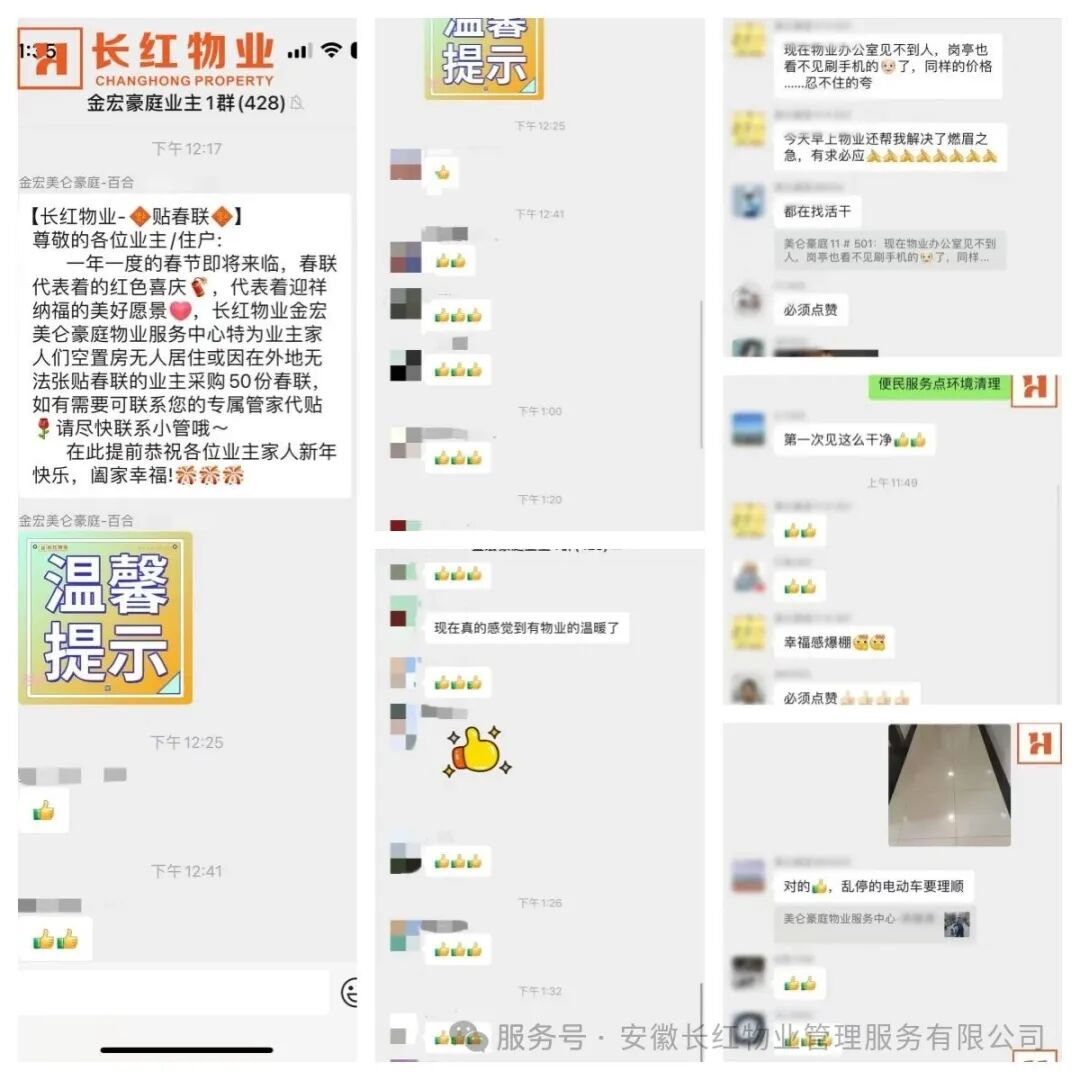 一份份认可,化作前行的动力。这一年里,物业服务中心的墙上,多了一面面鲜红的锦旗,“真情实意好物业,排忧解难贴心人”、“尽职尽责暖人心,贴心服务办实事”,每一行字都凝聚着业主的真情实感;业主微信群里,时常被暖心的赞许刷屏:“晚上十点多报修水管,师傅很快就上门了,太给力了!”“小区环境越来越好了,每天出门都心情舒畅”“安保师傅24小时巡逻,住着特别安心”……这些朴实的话语,是对我们工作的最大肯定,也是我们不断提升服务品质的底气。