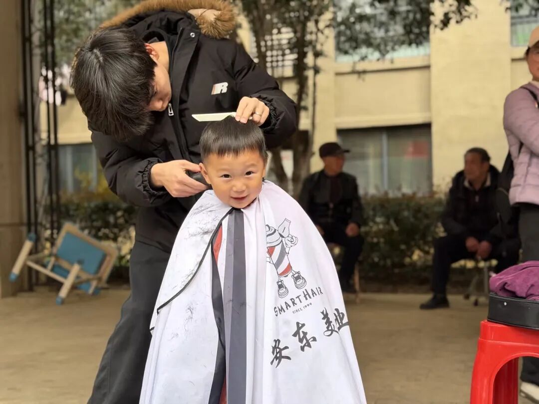 排队的老人们晒着太阳话家常,孩子们好奇地盯着理发师手中的工具,现场没有繁复的仪式,却自有一股温热的烟火气在流动。