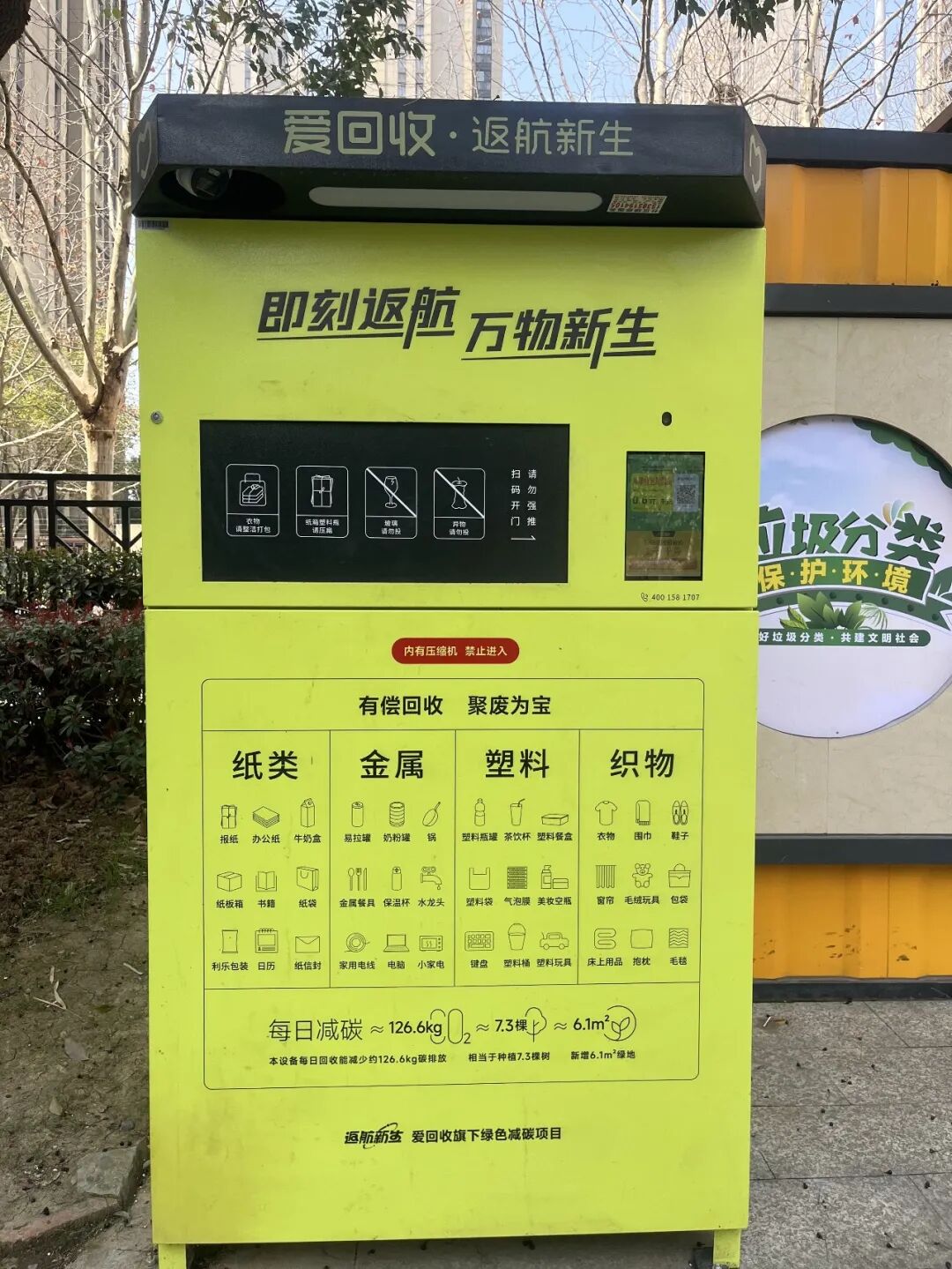 配置“互联网+回收”智能设备,优化可回收物回收流程,让回收更便捷、站点环境更整洁,以智慧化手段提升垃圾分类管理精准度与业主参与感。