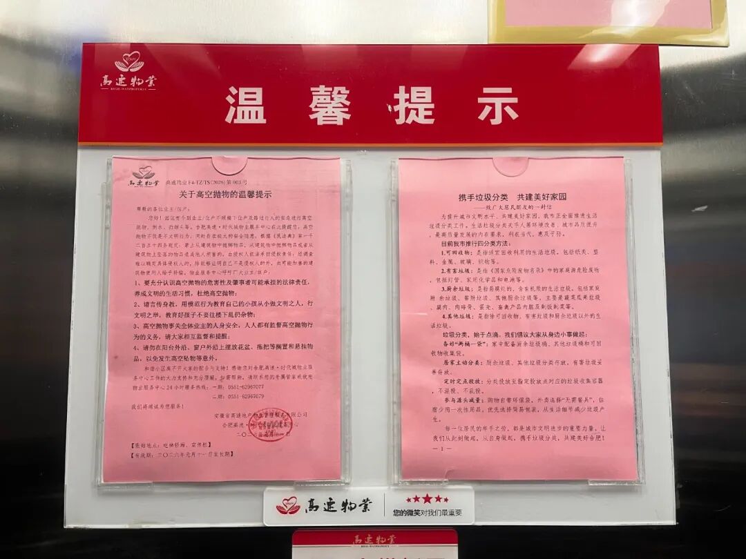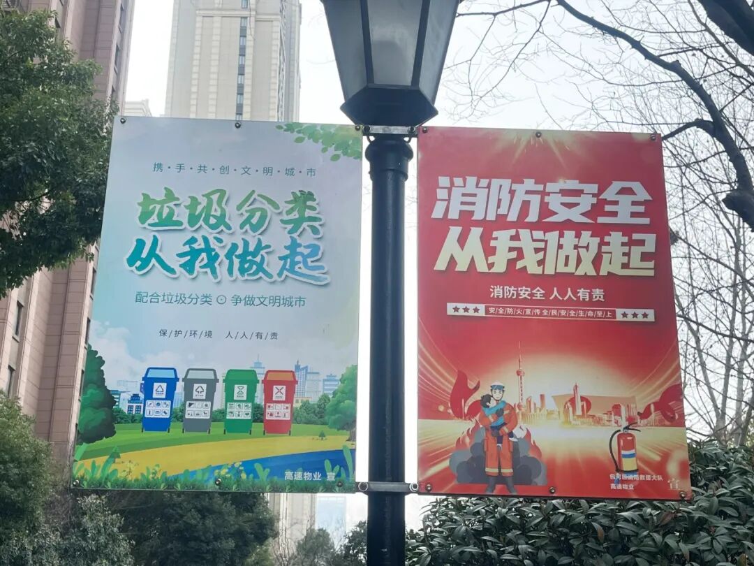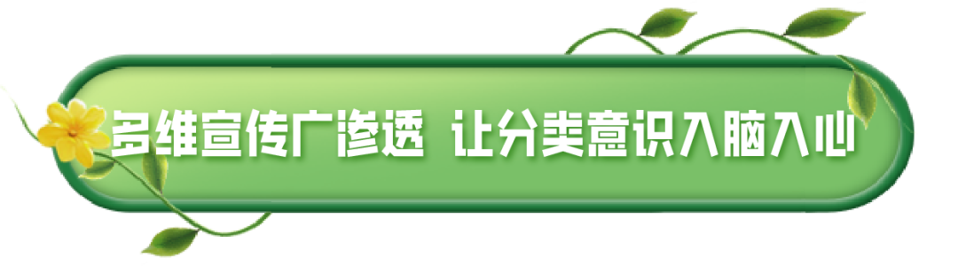 依托小区公告栏、电梯广告、业主群、公众号等多元载体推送分类知识,在园区出入口、主干道设置广播循环提示、地插宣传牌,借业主通勤 “碎片化” 时间开展高频温馨提醒。
