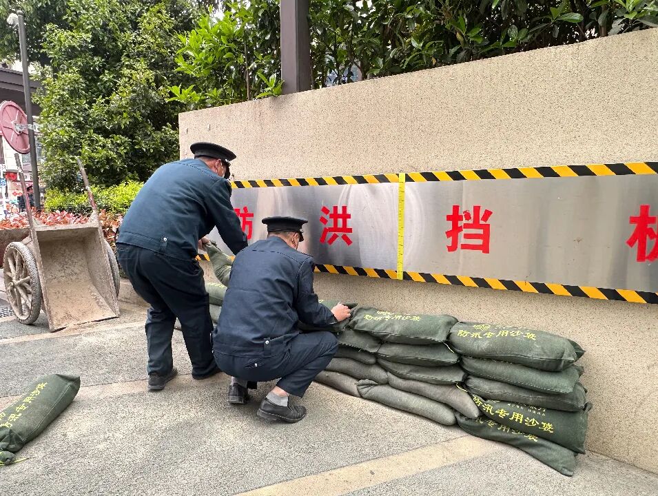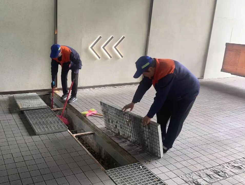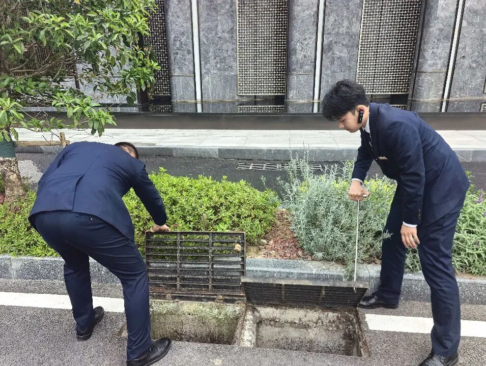 皖投服务各项目多岗位人员开展全方位防汛隐患拉网式排查整治。重点对小区内雨水井、排水管网、天台落水口等排水设施进行全面清掏,清除落叶、淤泥、生活垃圾等堵塞物,确保排水通道畅通无阻;对地下车库、地下室等易积水区域,提前堆放防汛沙袋、安装挡水板,检修调试抽水泵等应急排水设备,做好防范准备。