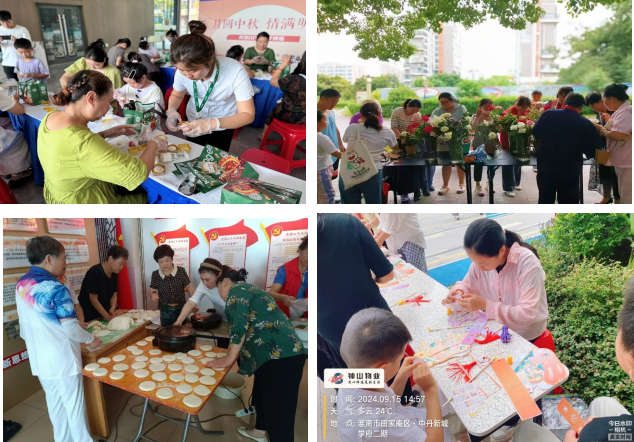 各物业服务企业在做好节前安全大检查工作的同时在专门设置的活动区域内,组织开展了亲子手工制作活动。孩子们在家长的陪同下,兴致盎然地制作中秋花灯、插花、月饼、烙糖馍等传统手工艺品。孩子们尽情发挥着自己的想象力和创造力,在制作过程中深刻感受到了中秋传统文化的独特魅力。而家长们则在一旁耐心指导,亲子间的互动进一步拉近了彼此的距离。