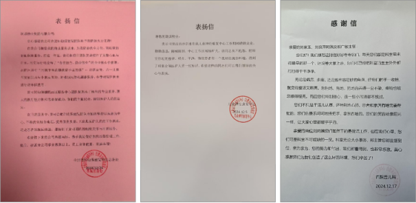 当我们走进医院,目光常常被那些身着白大褂、忙碌奔走的医护人员所吸引,然而,在医院的每一个角落,还有这样一群同样不可或缺的身影——筑诚物业人。“千淘万漉虽辛苦,吹尽狂沙始到金”,他们用勤劳的双手,为医院的正常运转保驾护航。为医院的正常运转、为患者的康复之路,奉献着自己的力量。今天,让我们将聚光灯聚焦在这些平凡而伟大的员工身上,一同见证他们的荣耀时刻。时光匆匆,如白驹过隙,转眼间又到了一年岁末。在这个充满收获与感慨的时刻,合肥市妇幼保健院西区项目收到了两封表扬信、一封感谢信和一面锦旗。来自总务处朱处的表扬信中提到:"筑诚物业自其接管医院物业服务后,提供了全方位、高质量的后勤保障。过去一年团队付出很多,开展了多种服务活动,展现出专业素养和应急能力,日常服务以病患为中心,诠释了“务实担当、勤奋敬业”的企业核心价值观。"体检中心马主任送来了锦旗,马主任感谢筑诚物业今年一直以来的付出,“不管把什么问题反馈给物业,都能及时有效的解决,这一年大家都辛苦了。”感谢信中提到刘家玉、刘良萍阿姨以及邢广敏主管。信中表示:“你们每天都是科室里来得最早的那一个,还没等大家上班,你们就已经把科室的里里外外都打扫得干干净净,你们用自己的汗水,为医护人员和患者营造了一个舒适、整洁的工作与就医环境。”另一封表扬信中提到保洁员沙宗连,在工作期间兢兢业业,勤勤恳恳,随喊随到。从不抱怨,把科室打理得整洁、明亮、干净,得到了科室全体医护人员一致好评。我们会以刘家玉、刘良萍、邢广敏、沙宗连等优秀员工为榜样,激励更多的团队成员在各自的岗位上发光发热。不断提升服务质量,注重每一个细节,用心去倾听医护人员和患者的需求,用实际行动去回应他们的期待。